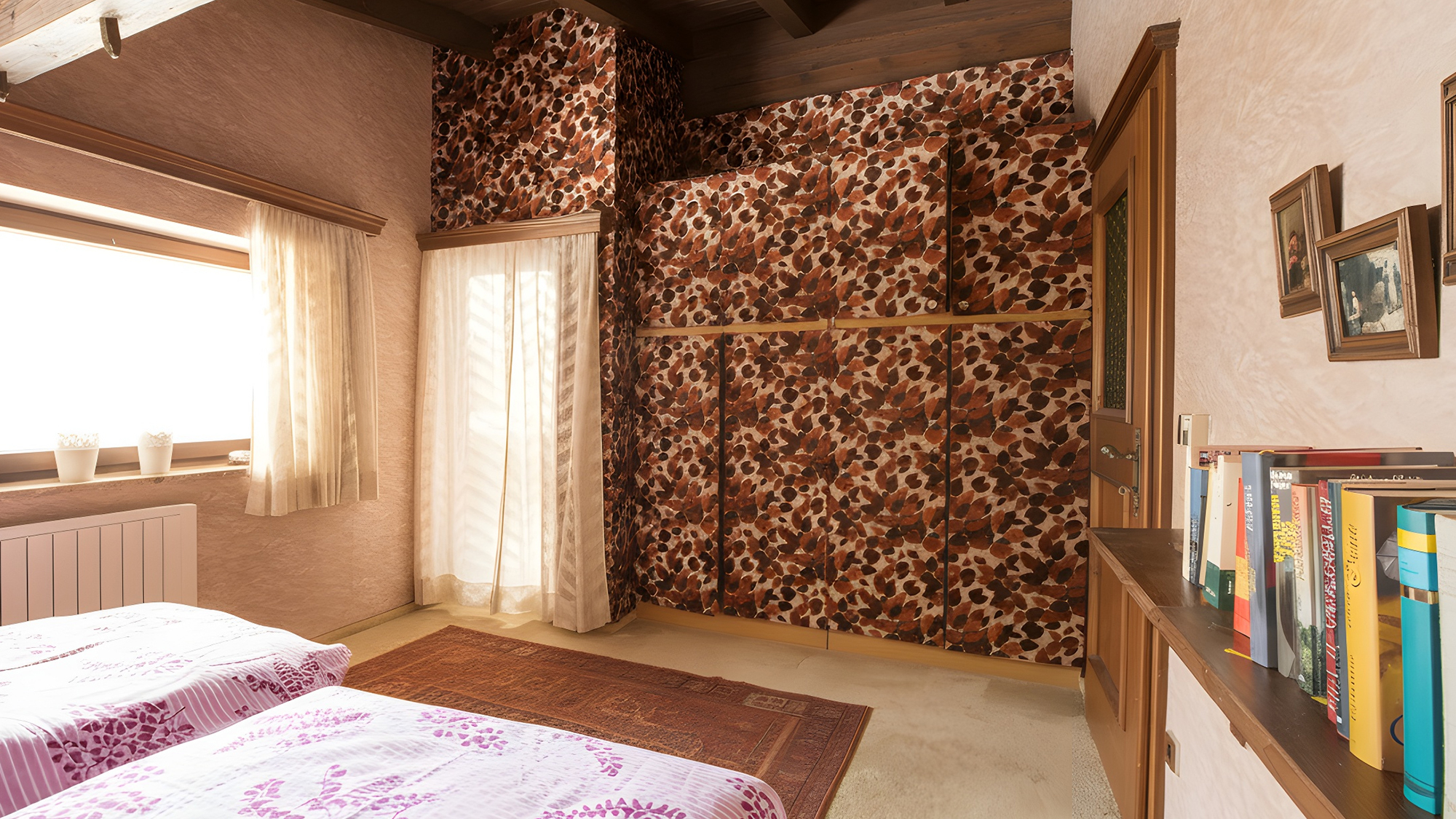 Im Untergeschoss erwartet Sie ein helles, großzügiges Schlafzimmer mit einem kuscheligen Doppelbett – ideal zum Entspannen nach einem erlebnisreichen Tag. Sanftes Licht sorgt abends für die richtige Stimmung zur Bettlektüre oder zum Abschalten.