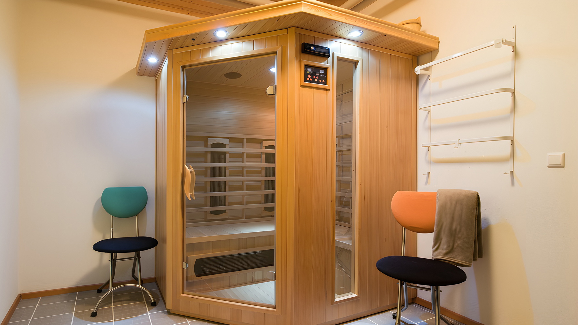 Nach dem Spielen folgt Entspannung: In der Infrarotsauna mit Platz für drei Personen genießen Sie wohltuende Wärme und tanken neue Energie – mit direktem Zugang ins Freie für die erfrischende Abkühlung danach.